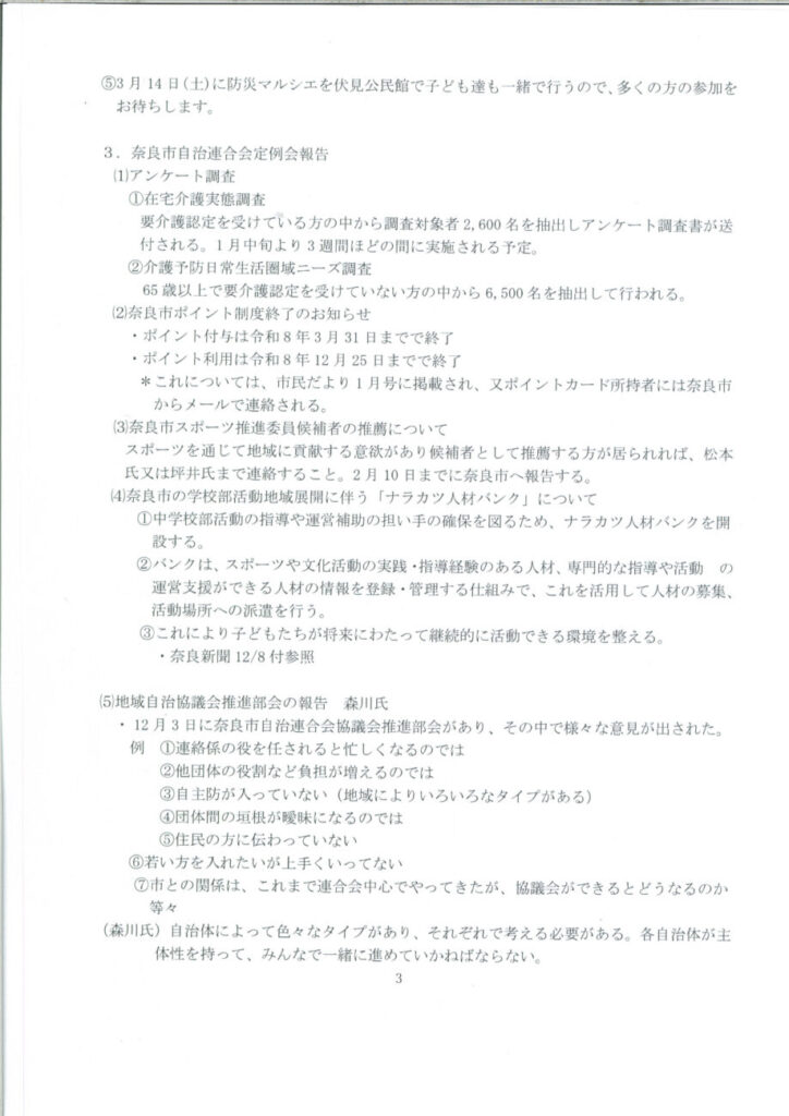 令和7年度 12月 報告 西大寺芝町1丁目自治会